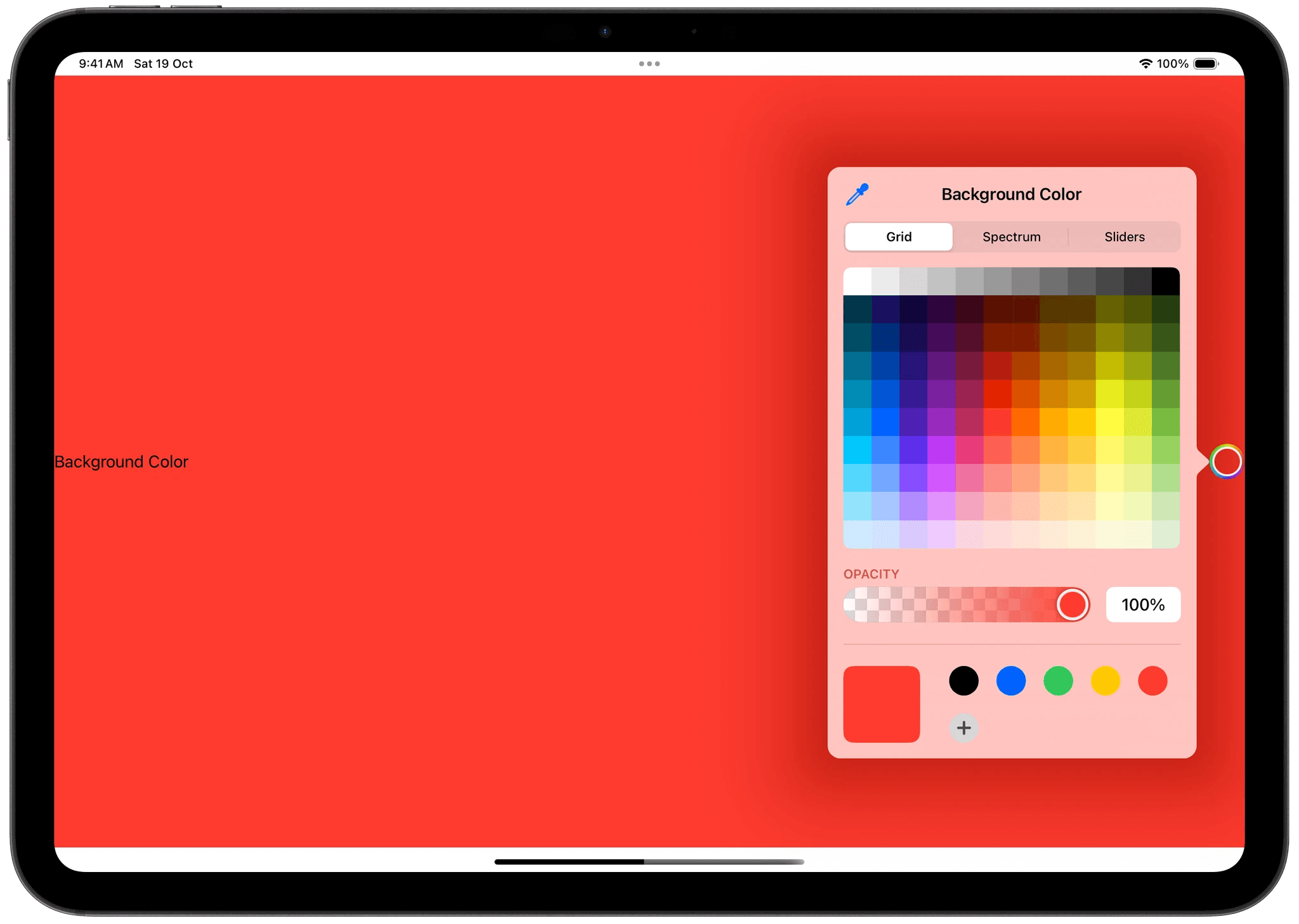 To use predefined colors, you can access it with Color.colorName. Below are some examples of the colors. For a full list, refer to the Human Interface Guidelines.