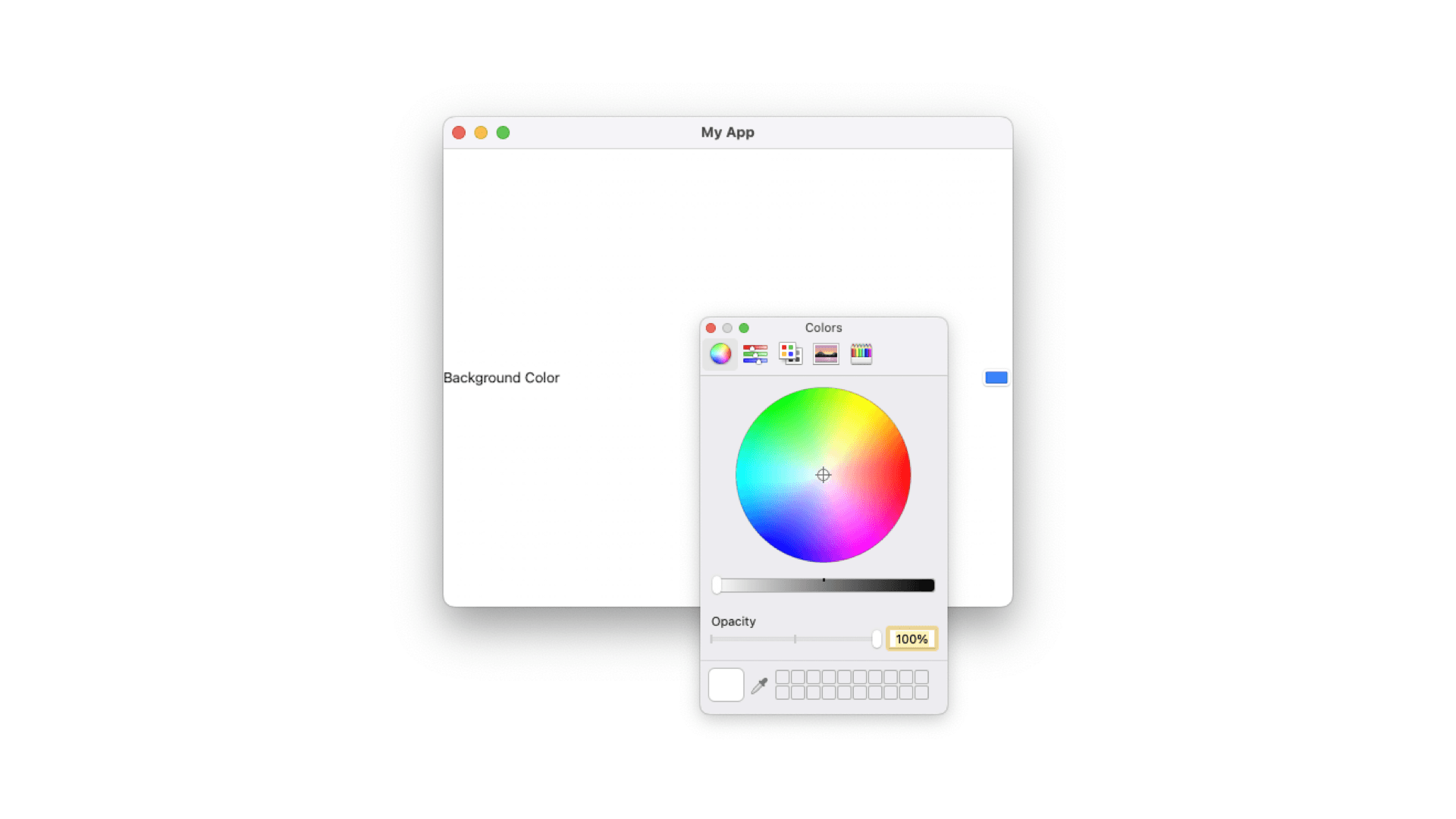 When using Swift Playground on Mac, the color picker appears as a native macOS color picker in a rectangular box with a separate window to select the color.