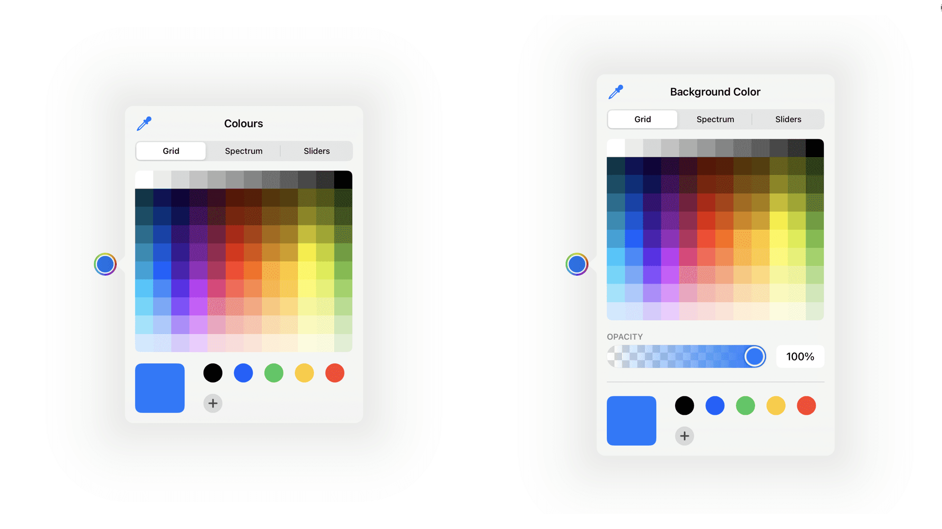 By default, Color Pickers support opacity. You can disable this behavior with the supportsOpacity parameter.