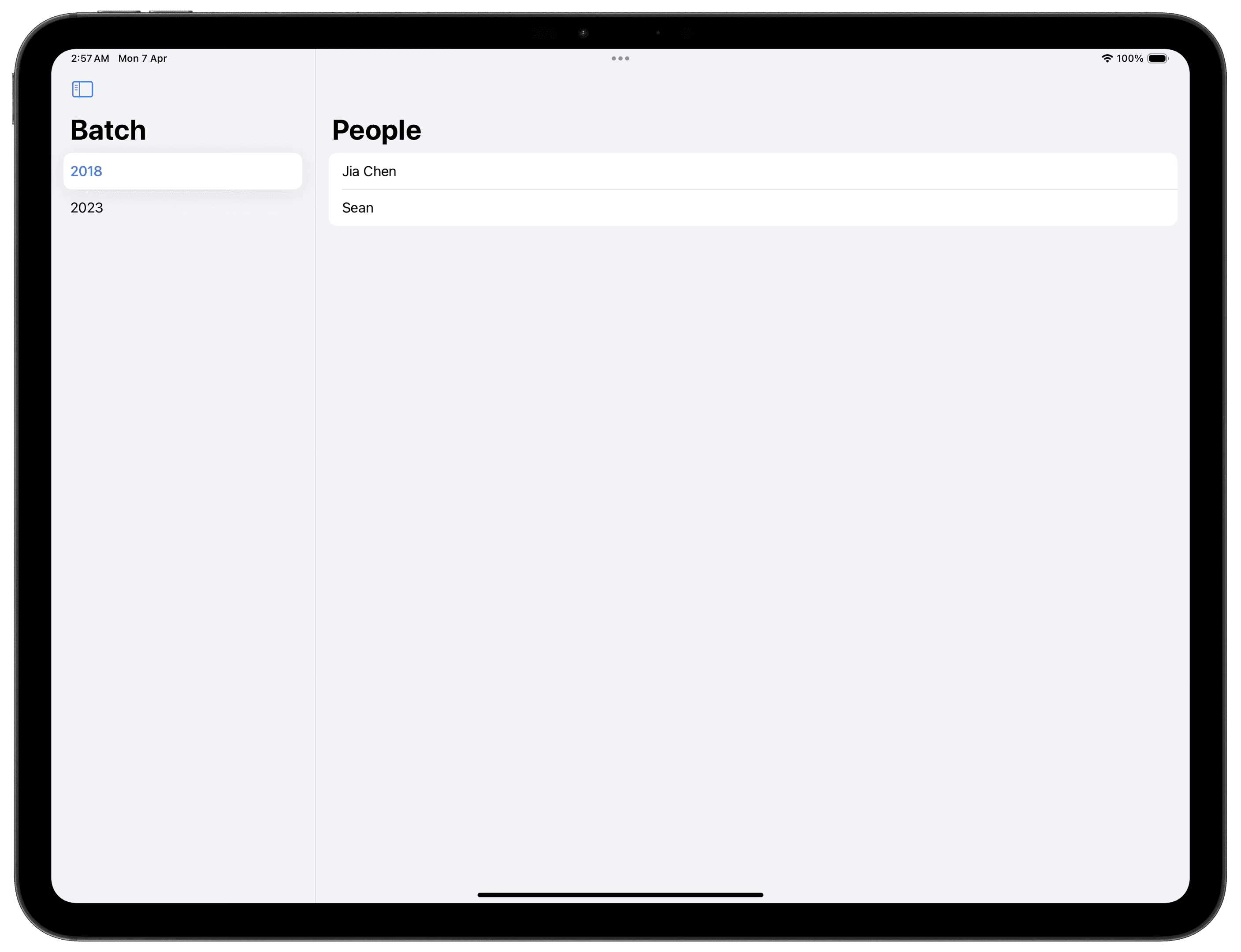 Below shows an example of a sidebar with a .navigationSplitViewColumnWidth(200)modifier.