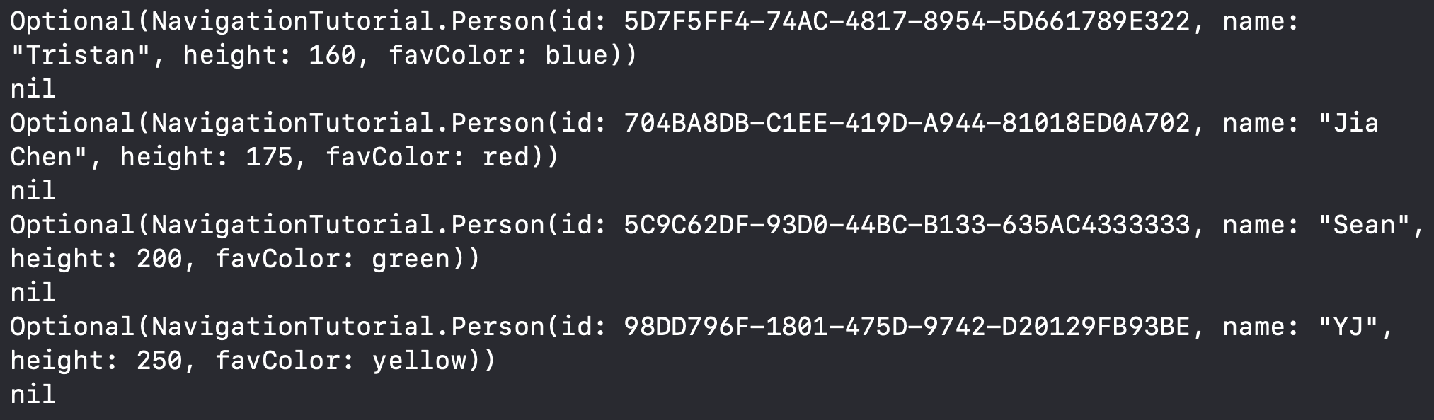 The example below shows how the modifier can be used to programmatically add a view to the stack, keeping track of which person (if any) is being selected and printing the result into the console. .navigationDestination(item: destination:) can only be used within a NavigationStack or NavigationSplitView.