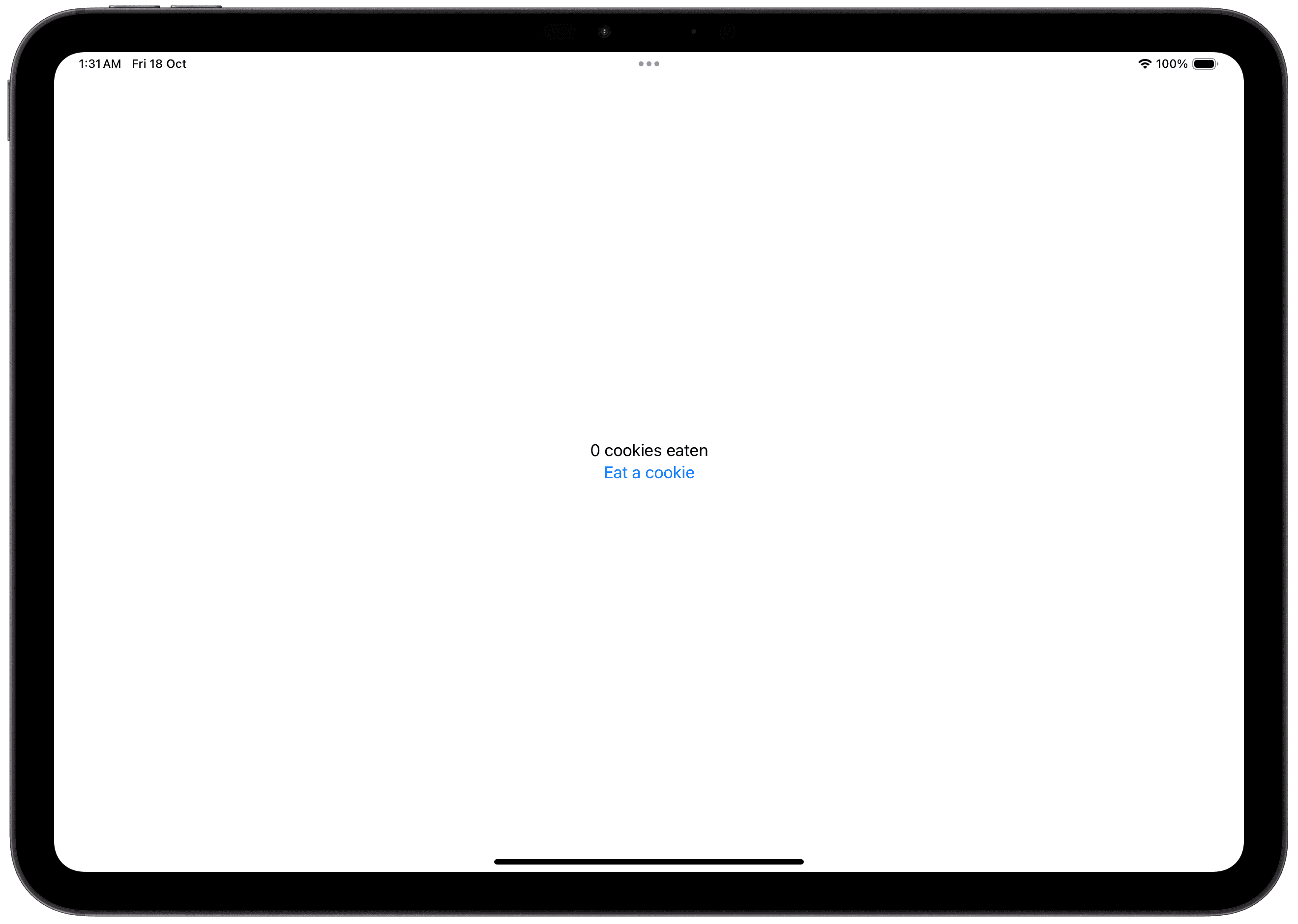 In this example, when the "Eat a cookie" Button is tapped, the Text will re-render its contents and show the updated value of the counter State variable.